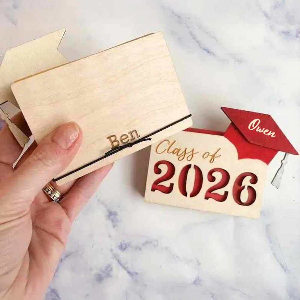 With its intricate design and attention to detail, this gift card holder is not only functional but also serves as a beautiful keepsake for the graduate. It can be customized with the graduate's name, graduation year, or any other significant details, giving it a personal touch that celebrates their accomplishment in a unique way.