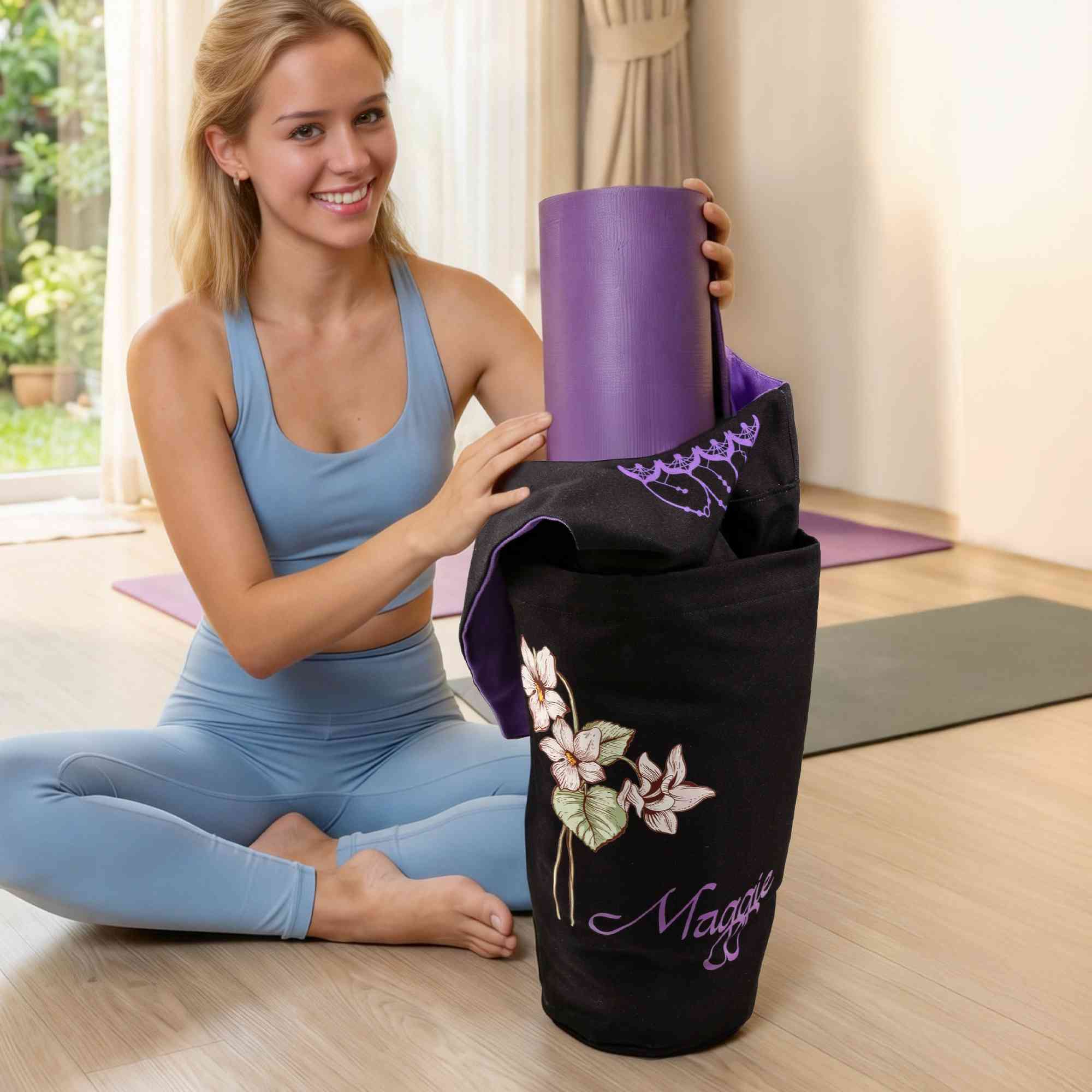 Personalized - Our yoga mat bag can be customized with a name, adding a personal touch and making it uniquely hers. The personalized embroidery adds a stylish and distinctive element to the bag.